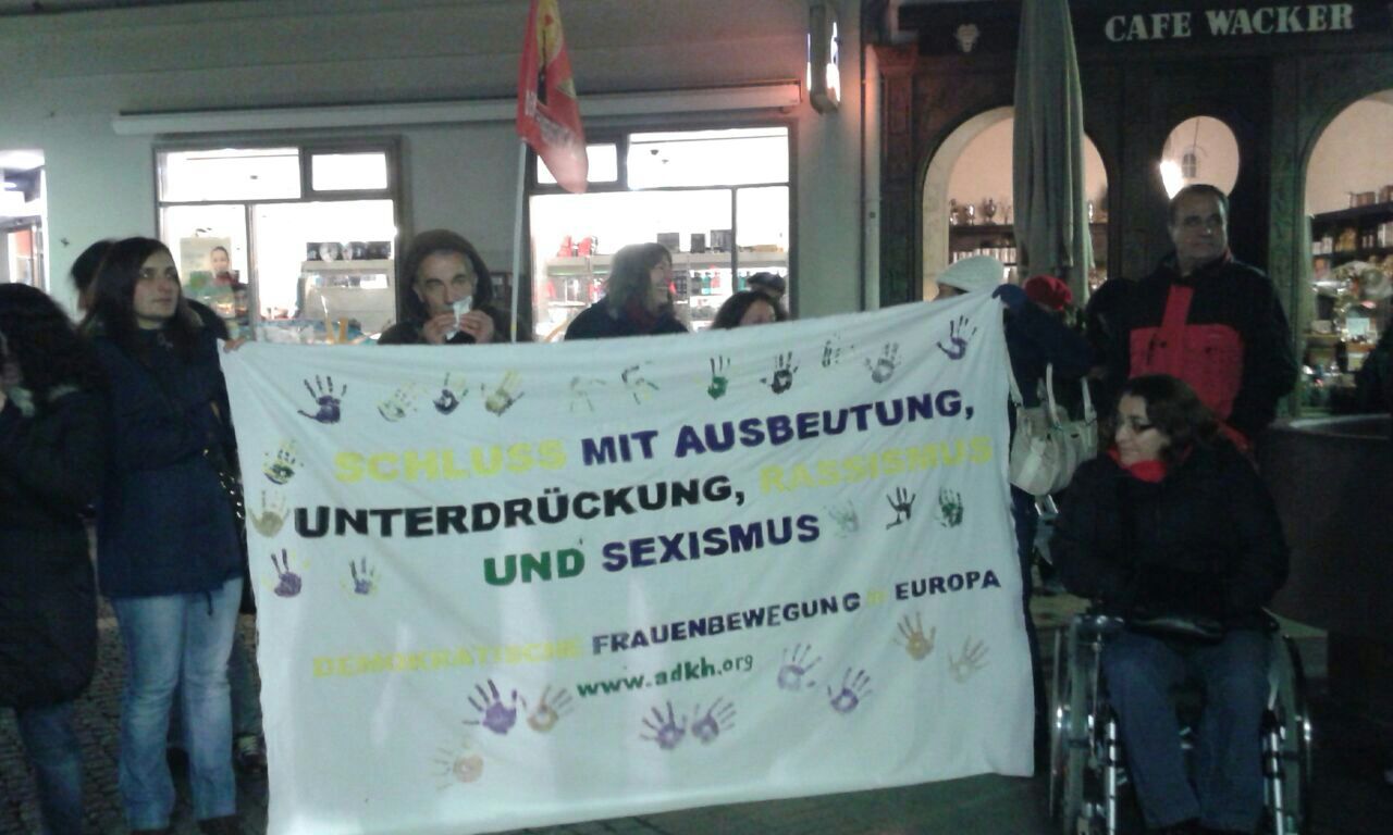 Bu eylemlilikler kapsamında Frankfurt’da kadın platformu ile birlikte 25 Kasım günü yürüyüş ve miting düzenlendi. Mitingde Kapitalizmin kadın ve emek sömürüsüne ve Rojava’da ki direnişe vurgu yapıldı. Aynı zamanda Offenbach şehrinde ise tacize uğrayan iki alman kıza yardım etmek isterken aldığı darbe sonucu komaya giren ve beyin ölümü gerçekleşen Tuğçe Albayrak’a yapılan saldırı protesto edildi. Sinevizyon ve müzik etkinliği ile yürüyüş sona erdi.
