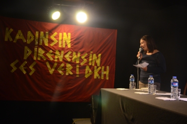 Son olarak sözü alan DKH temsilcisi panelistlerin konuşmalarını toparlayarak şiddete, cinsel şiddete, tacize, tecavüze ve kadın katliamlarına karşı kendi perspektifi doğrultusunda son sözleri söyledi.
