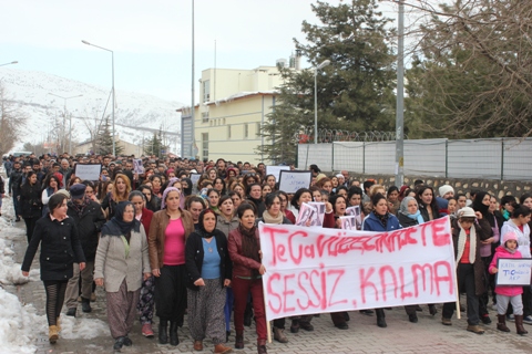 DERSİM (15.02.2015) – Hozat’ta DHF, HDP, Halk Cephesi ve ÖDP’nin çağrısıyla Cumhuriyet Caddesi REMAR önünde bir araya gelen Hozat halkı, en önde kadınlarla yürüyerek Özge Can’ı katlettiren zihniyetten hesap sorma sözü verdi. Esnafın da kepenk kapatarak destek verdiği eylem “Tecavüze Cinayete Sessiz Kalma” pankartı arkasında “Hırsız tacizci tecavüzcü AKP” , “Kahrolsun AKP diktatörlüğü” , “Özgecan Aslan onurumuzdur” , “Kadına uzanan eller kırılsın” sloganlarıyla başladı.