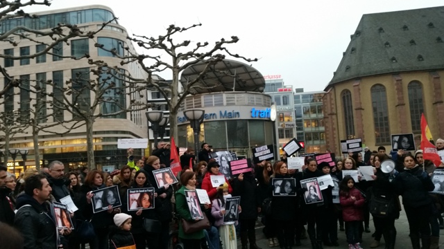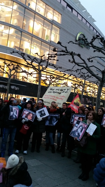 Frankfurt (18.02.2015)Avrupa Demokratik Kadın Hareketi, Frankfurt’da Özgecan Aslan şahsında yaşanan kadın cinayetlerini protesto etti. Kadın cinayetlerinin geldiği boyutu göstermek için Avrupa’nın çeşitli kentlerinde yapılan protestolarda kadın cinayetlerinin bir sistem sorunu olduğu, öldürülen her kadının sorumlusunun kapitalist sistem ve iktidar partileri olduğu vurgulandı. Frankfurt çarşısında yapılan basın açıklamasında Alamanya’da yaşanan kadın cinayetlerine vurgu yapıldı. Kadın cinayetleri politiktir diyen kadınlar Özgecan şahsında kadına yönelik şiddeti görünür kılmak için protestolara devam ediyorlar…