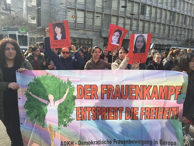 Zurih (9/03/2015) Avrupa Demokratik Kadın Hareketi “Kadınlar Zirveleri Zaptediyor!” şiarıyla 8 Mart Dünya Emekçi Kadınlar Günü’nü alanlarda karşıladı.İsviçre’nin Zürih kantonunda Avrupa Demokratik Kadın Hareketi’nin de bileşeni olduğu İsviçre 8 Mart Komitesi’nin bu seneki ana sloganı olan “Frauen Kämpfen!” ( Kadınlar Savaşıyor! ) şiarıyla 07.03.2015 Cumartesi günü miting düzenlendi.Saat 13:30’da Zürich Hechtplatz’da başlayan yürüyüşe yerli ve göçmen birçok kadın kurumu katıldı.”Kadın Mücadelesi Özgürlüğü Yeşertir.!” pankartıyla alana çıkan Avrupa Demokratik Kadın Hareketi’nin kortejinde; Rosa Luxemburg’tan Clara Zetkin’e, Meral Yakar’dan Ebru Aslan’a, Barbara Anna Kistler’den Berna Ünsal’a “Kadınım, Kendi Savaşımın Savaşçısıyım” diyerek devrim mücadelesinde ölümsüzlüğe uğurlanan devrimci-sosyalist kadınların fotoğrafları taşındı.Yürüyüşte sırasında sık sık, “Yaşasın 8 Mart, Yaşasın Enternasyonal Kadın Dayanışması” sloganlarını Almanca olarak atıldı.Yaklaşık 2 saat süren 8 Mart yürüyüşü Zürich Helvetiaplatz’da sloganlar ve alkışlarla sonlandırıldı.
