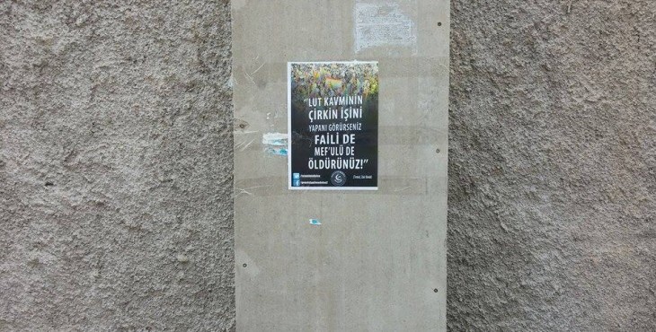 Genç İslami Müdafa imzalı “Lut kavminin çirkin işini yapanı görürseniz, faili de mef’ulü de öldürünüz!” ifadelerinin yer aldığı afişler Ankara sokaklarına yaygın bir biçimde asıldı.