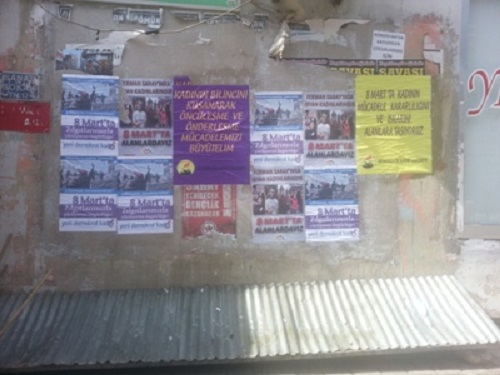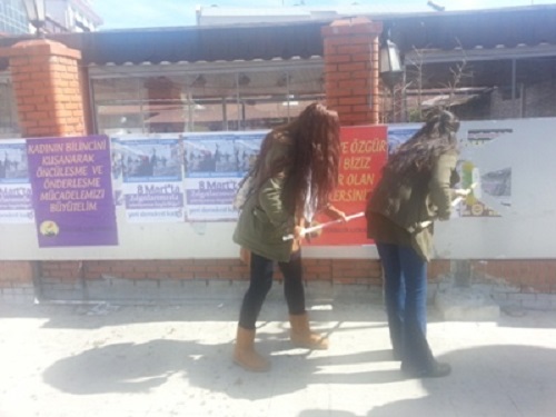 Dersim’de 8 Mart Dünya Emekçi Kadınlar Günü kapsamında çalışma yürüten kadınlara karşı geliştirilen faşizan uygulamalara, gözaltılara karşı ortak afiş çalışması yürüten Demokratik Kadın Hareketi (DKH), Sosyalist Kadın Meclisleri (SKM) ve Yeni Demokrat Kadın (YDK)’nın yapmış olduğu afişler kolluk güçleri tarafından sökülmüş ve saldırılara bir yenisi daha eklenmiştir. Tüm bu saldırılara karşı 8 Mart’ta faşizan uygulamalara karşı çalışmaları büyüteceğini ifade eden kadın kurumları bugün tekrardan Dersim’de sloganlar eşliğinde ortak afiş çalışması gerçekleştirdi.