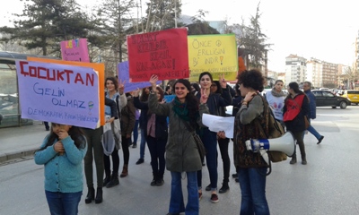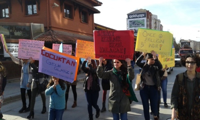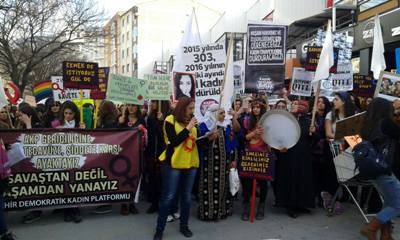 Basın açıklamasında; “8 Mart 159 yıl önce New York’lu dokuma işçisi kadınların yaşamları pahasına başlattığı isyanın bir mirasıdır. Biz bu mirası evlerde, işyerlerimizde ve sokaklarda büyüterek sürdürüyoruz. Şimdiye kadar verdiğimiz mücadele, bugün meydanlara taşan isyanımız, şiddetin her türlü biçimini ortadan kaldırma, sosyal, siyasal ve ekonomik olarak bizi yok sayanlara karşı buradayız deme kararlılığımızın bir ifadesi. Bu irade sayesinde tüm renklerimizle meydanlardayız. Her gün akıllara zarar açıklamalar yaparak kadın katliamlarının, nefret cinayetlerinin, tacizin, tecavüzün ve kadına yönelik her türlü şiddetin sürmesini sağlayanlara karşı her gün büyüyen isyanımızla buradayız. Her gün 5 kadının öldürülmesine, onlarcasının tacize tecavüze uğramasına tahammülümüz yok. Adeta bir kadın mezarlığına dönen bu ülkede 2016 yılının ilk ayında 36 kadın erkekler tarafından öldürüldü.14 yıllık AKP iktidarı süresince kadın cinayetleri %1400 artış gösterdi. AKP iktidarı boyunca kadın bedenine yönelik cinsiyetçi söylem ve uygulamamalar kadın bedenine yönelik tahakkümcü erkek aklını gözler önüne sermekte. Çok değil daha geçen hafta Kayseri de tabancayla intihar eden 12’nci sınıf öğrencisi 17 yaşındaki Cansel Buse K., matematik öğretmeni tarafından cinsel istismara uğradı. Gençlerin şiddet sarmalı ile beslendiği toplumsal yaşamdan ve kadın cinayetlerinden Milli Eğitim Bakanlığı başta olmak üzere AKP hükümeti sorumludur. LGBTİ bireyler, toplumun her yerinde ayrımcılığa uğruyor ve nefrete maruz kalıyor. Nefreti görünmez kılan devlet açık bir biçimde bu nefrete ortak olmakta, yasalar nefret suçlarının önünü açmakta ve körüklemektedir. Bizler sadece “kadın” oldukları için öldürülen Özge can Aslan ,Cansu Kaya ve yüzlerce kadının katlinden sorumlu olan cinsiyetçi ve cinsel saldırıları körükleyen zihniyetin değişmesi için her alanda mücadele etmeye devam edeceğiz. ” ifadelerine yer verildi.