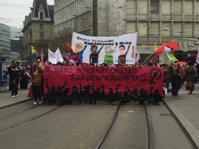 ZÜRİH (13.03.2016) – İsviçre’nin Zürih kantonunda binlerce kadın 8 Mart Dünya Emekçi Kadınlar Günü vesilesiyle “Cinsiyetçiliğe, kapitalizme ve savaşa karşı, örgütlü mücadele” şiarıyla bir yürüyüş gerçekleştirdi.