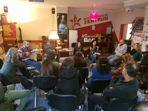 Özellikle Almanya’da ve Avrupa ülkeleri başta olmak üzere üç noktada konuşulur kadın sorunu. Bir Avrupa vardır Asya Ortadoğu birde üçüncü dünya ülkeleri denilen Afrika ülkeleri vardır. Önce Afrika ülkeleri anlatılır orada kadın daha çok sömürülür, iş piyasasına dahil edilmez, evlerine kapatılmış şeklinde anlatılır. Avrupa’daki kadının bunlara göre daha az ezildiği vurgusu yapılır. Ve böylece Avrupa’daki sömürü görünmez kılınır.” Sunumuna ekonomik şiddetin kadını nasıl tahakküm altına aldığını psikolojik olarak zayıflattığını ve hangi biçimde sömürüldüğünü vurgulayarak, “Kapitalizm de çok daha öne çıkan para mülkiyet ilişkisi kadının az gelirli olması sadece “mutfak gideri” için çalışma koşuluna sahip olmak kadını ev içinde de yedek duruma düşürmesine neden oluyor. Kadına ancak part time işlerde çalışma koşulları sunulmakta. ”diyerek yaşanan pratik örneklerle kadın emeğinin talanı ve yarattığı sonuçlar vurgulandı. Her iki kadın panelist, kadının bu durumu aşmak için, fark yaratmak için bilinçli, komünal anlayışla örgütlenmeli vurgusu ile bitirildi.