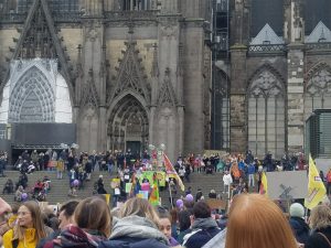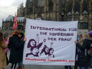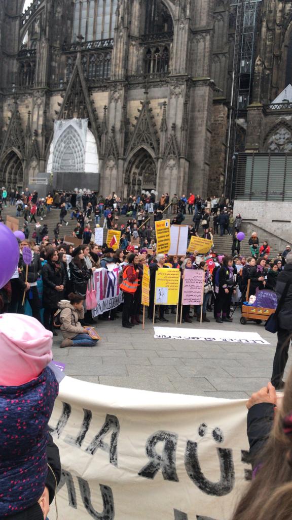 8 Mart vesilesiyle Köln merkez garı önünde saat 17:00’de binlerce kadın buluştu. 8 Mart Dünya Emekçi Kadınlar günü için farklı fraksiyonların yer aldığı platformda ADKH’de yerini aldı. Kısa bir mitingin ardından yürüyüşe geçilirken bir gurup kadın ön saflarda arkasında bir blok boş bırakılarak bedenen aramızda bulunamayan kadınları temsilen bir blok oluşturuldu. Yürüyüş coşkulu bir şekilde geç saatlere kadar Köln sokaklarında devam etti.