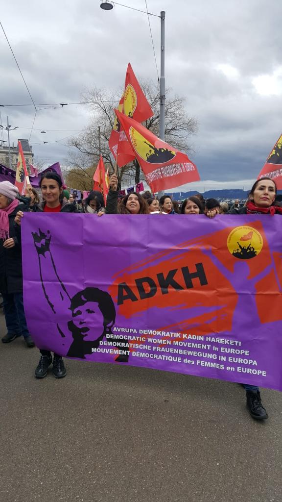 İsviçrenin Zürih kentinde 8 Mart Dünya Emekçi Kadınlar Günü vesilesiyle 9 Mart Cumartesi günü Avrupa Demokratik Kadın Hareketi, Yeni Kadın, Sosyalist Kadınlar Birliği, Mor-kızıl Kollektiv, Özgür Kadınlar Platformu, Aufbau Fraunstruktur, Frauenlesben Kasama, Frauen Lora, Frauen Kafi inder RAF gibi çeşitli Demokrat kadın kurumlarının öncülüğünde binlerce kadının katılımıyla yürüyüş düzenlendi. Polis yürüyüşü engellemek için bir çok geçiş noktasına barikat kurdu.Havanın soğuk ve yağışlı olmasına rağmen kadınlar barikatlara karşı direnerek uzun bir süre alanı terk etmedi ve kadınların kararlılığı karşısında barikatlar açılmak zorunda kaldı.