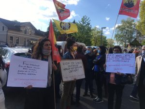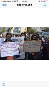 Meryem Şahin’in yanında olduklarını vurgulamak için evine yakın bir araya geldiler . Yaklaşık 200 kişinin katıldığı, içinde farklı kadın kurumlarının