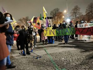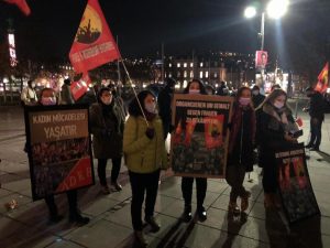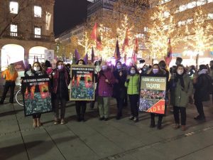 Zürih’de 25 Kasım kadına yönelik şiddet hayır mitingi 25.11.2020 saat 19.00 da Helvetiye Platza’da yapıld. Yaklaşık 150 kişilik bir kadın kitlesi toplandı hep birlikte “ susmuyoruz, korkmuyoruz, itaat etmiyoruz” sloganıyla miting başladı. Katılan kurumlar ADKH, YENİ KADIN, SKB, MOR KIZIL KOLETİF, KÜRT KADIN HAREKETİ, İsviçreli kadın örgütleri katıldı. Her kurum sürece dair açıklamalarını okudular.
