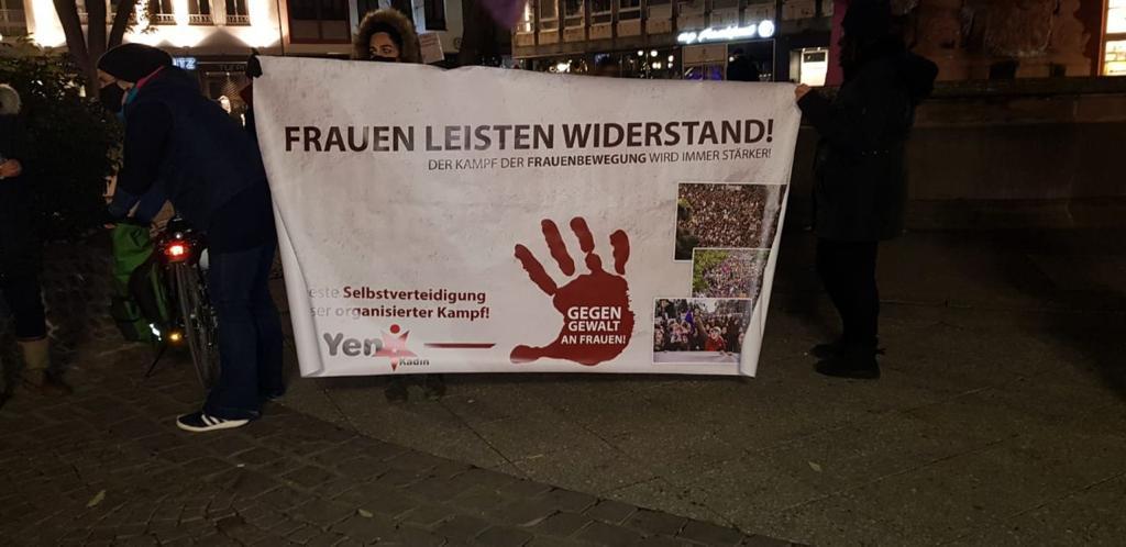 Kadına şiddetini görünür kılan platformlardan biri olan Stuttgart Frauenbündnis kadın platformunun organize ettiği miting de coşkuyla geçti. ADKH, Courage, Frauenkollektiv, SKB, YJK-E, Yeni Kadın ve Zusammenkämpfen yer aldığı platform da her kurum açıklamasını okudu. Ortak mücadelenin adı plan AKD yaptığı açıklama da paylaşıldı . Farklı olarak Avrupa Kadınların Birleşik Devrimci Hareketi adına bir açıklama da okundu. Açıklama da faşizmi yeneceğiz kadın özgürlüğünü kazanacağız denilerek birleşik kadın mücadelesine vurgu yapıldı.