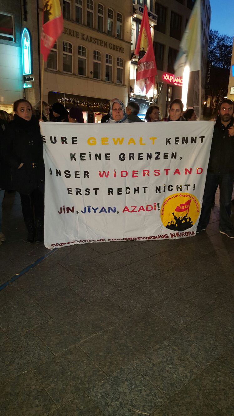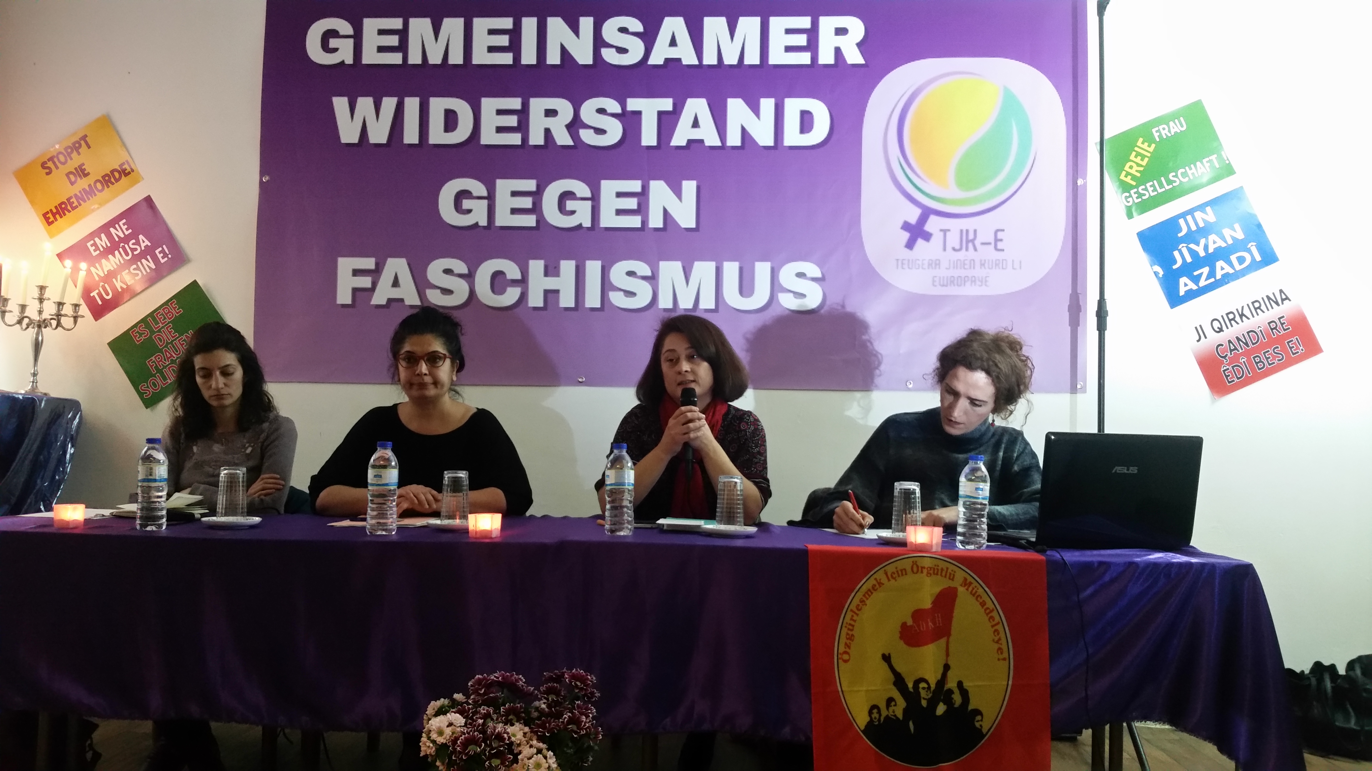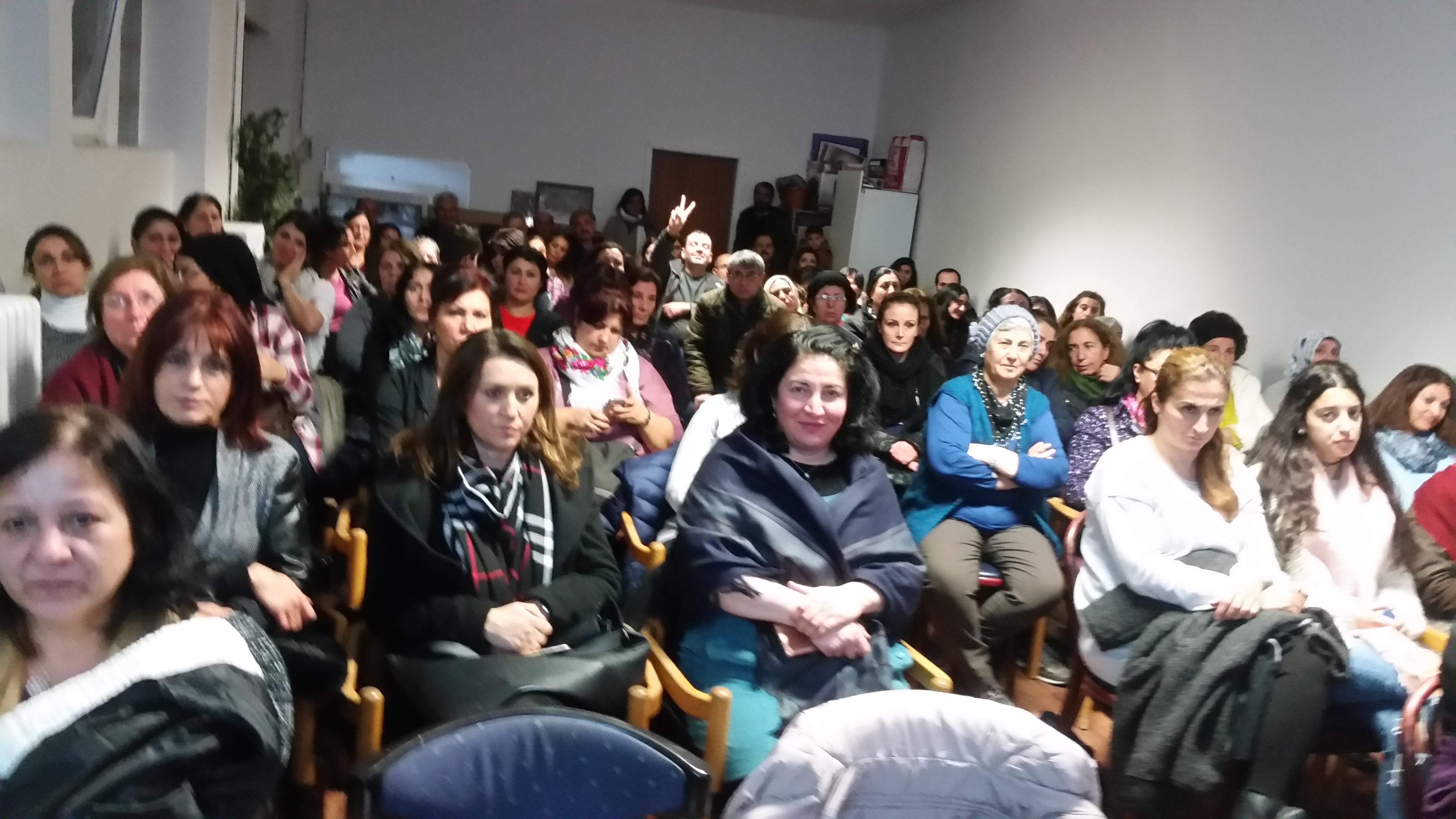 Biz Avrupa’daki göçmen ve yerli demokratik, sosyalist, feminist kadın örgütleri olarak Halkların Demokratik Partisi HDP’yi sahipleniyoruz. HDP’nin kadın özgürlük mücadelesinin tüm taleplerine ve çağrılarına göre kendisini var etmeye çalıştığı, ezilen tüm kadınlara sahip çıkan bir parti olduğunu biliyoruz. HDP programında, tüzüğünde kendisini kadın eksenli örgütlüyor. Eşbaşkanlık sistemiyle eşitlik mücadelesinin parlamentoda, belediye yönetimlerinde önemli bir simgesi oldu. Seçimlerde milletvekili ve belediye başkan adayların yarısını kadınlardan belirledi. Kadın eksenli anayasayı savundu. Kadın ve Eşitlik Bakanlığının kurulmasında ısrar etti. Belediyelerde işçilerin toplu iş sözleşme taleplerinde ‘’8 Mart Dünya Emekçi Gününü ücretli izin günü olsun’’ maddesine imza attı. Bütçenin toplumsal cinsiyete dayalı düzenlenmesini istedi. Kadına yönelik şiddete karşı caydırıcı önlemler alınması için mücadele etti. Kürdistan’daki savaşın durdurulması kadın ve çocukların savaşta yaşadığı zulmün son bulmasını barış eksenli istedi. Gözaltında bulunan HDP’li tüm milletvekilleri ve kadın milletvekilleri Figen Yüksekdağ, Nursel Aydoğan, Leyla Birlik, Selma Irmak, Gülser Yıldırım’ın HDP’nin kadın partisi olması mücadelesinin temsilcileri olarak görüyor ve sahipleniyoruz.