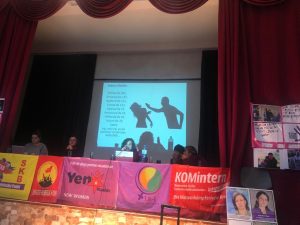 Paneli düzenliyen Kadın hareketleri ADKH, Yeni Kadın, KoMintern, Avesta, Frauen Zentrum ve SKB kurumlardan oluşmaktaydı.