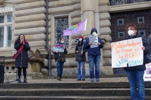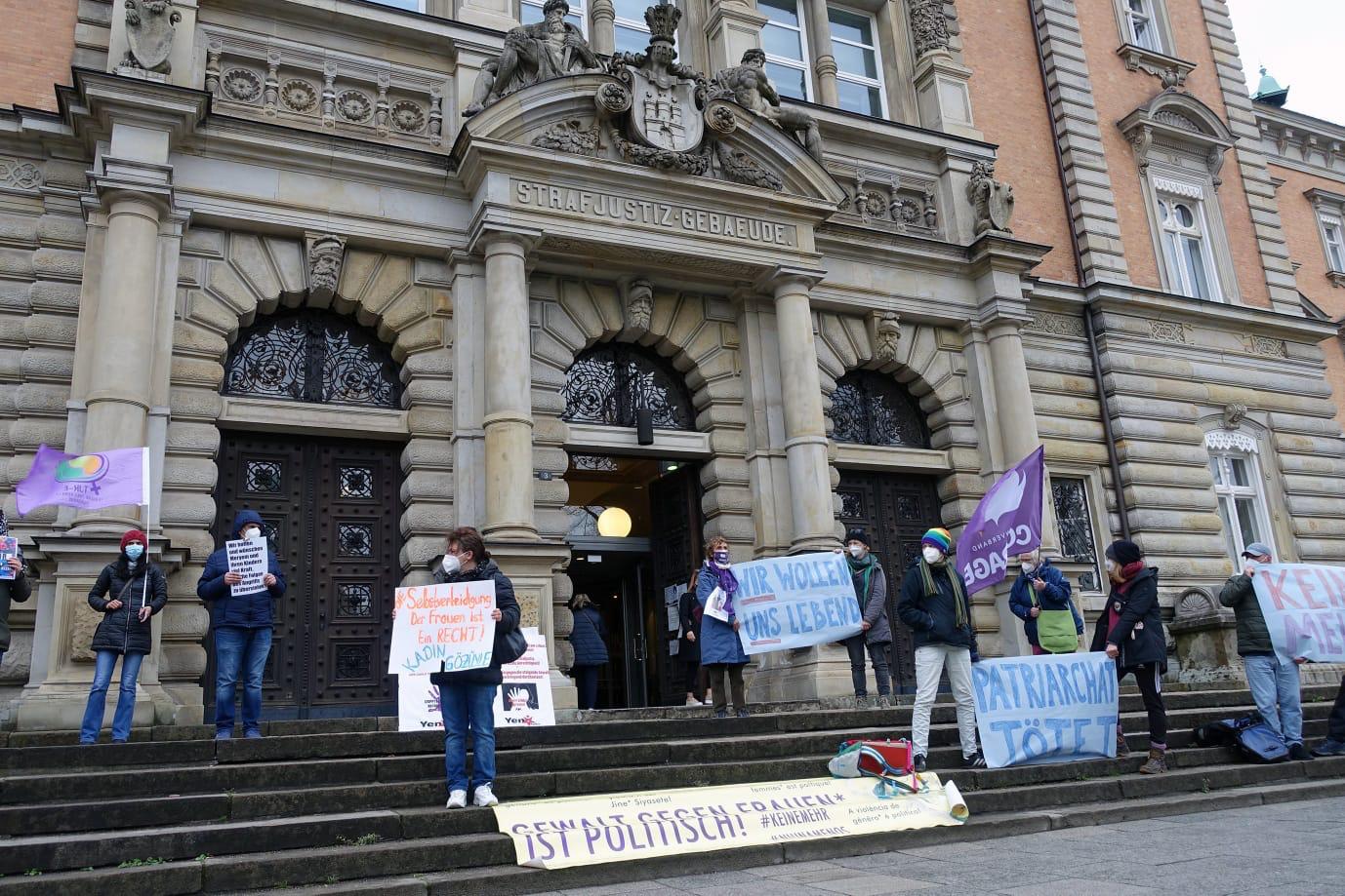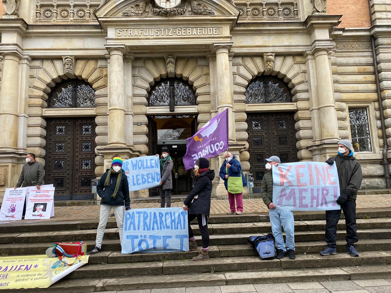 Bugün karar duruşması öncesi saat 09:30’da kadın kurumları mahkeme önünde eylem yaptı. Yapılan açıklamada Meryem ve çocuklarına yaşatılan vahşet ve Almanya’da kadın ve çocuklara yönelik şiddetin özellikle pandemi döneminde alınan karantina kararlarıyla arttığı, buna karşı patrikal egemen sistemin kadın, LGBTİQ+ ve çocuklara yönelik her türlü şiddeti bilinçli politik tutumlarıyla meşrulaştırarak, pratikte somut adımlar atmayarak ve İstanbul Sözleşmesi’nin imzacı ülkeleri olmalarına rağmen yükümlülüklerini yerine getirmediklerine dikkat çekildi. “Bizler kadın ve çocuklara yönelik her türlü şiddete karşı koruma önlemlerinin alınmasını ve faillere hak ettikleri cezanın verilmesini talep ediyoruz. Kadınları her türlü şiddete karşı ortak hareket ederek mücadele etmeye davet ediyoruz” denildi.